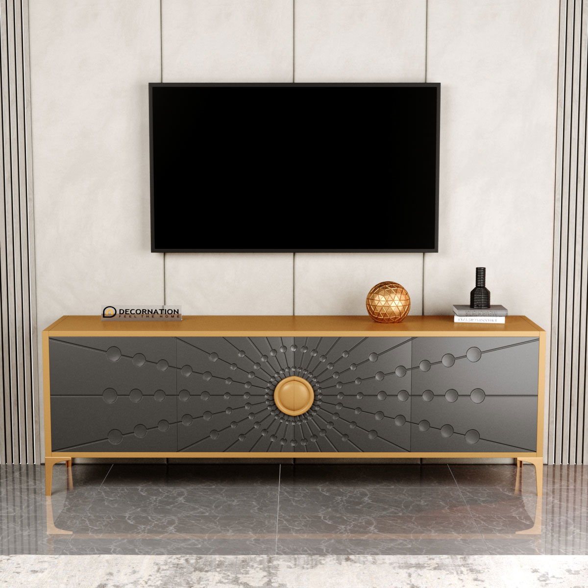 Art Deco-inspired TV stand with elegant grey and gold finish