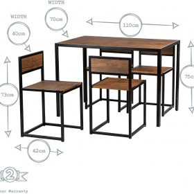 - Dimensions: Table: Width: 70cm Depth: 110cm Height: 75cm Chairs: Width: 40cm Depth: 42cm Height: 73cm