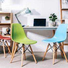 * PP plastic seat and solid wood legs