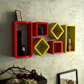 Wall Shelf Rack Set of 6 Cube Rectangle Shelf For Storage/Display – Red & Yellow