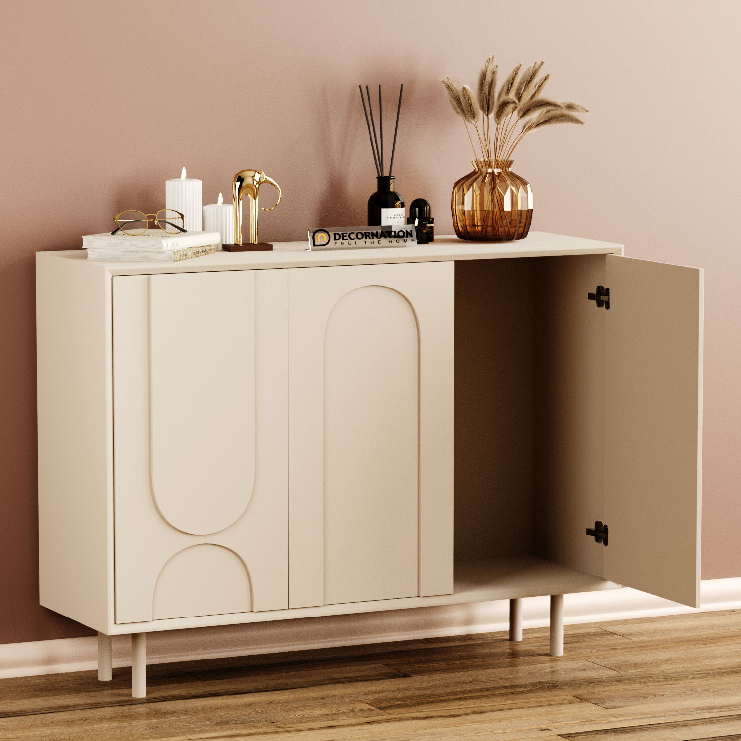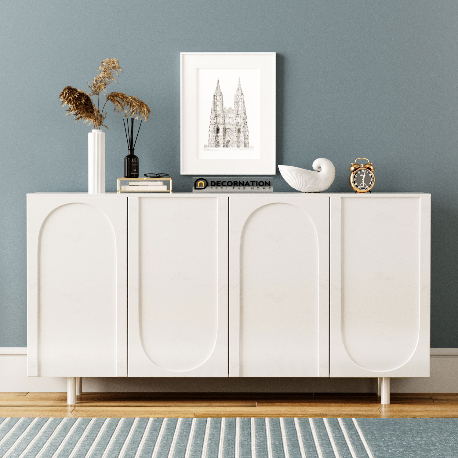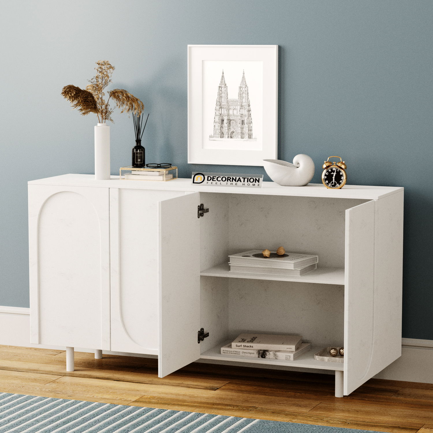 Bring contemporary elegance to your home with the Elara Sideboard in Slate Finish. Designed in a light luxury style, this refined storage cabinet combines functionality with modern aesthetics. Featuring two spacious doors and inner shelving, it offers ample room to organize dinnerware, kitchen essentials, or home accessories. The sleek slate finish paired with minimalist lines adds a touch of sophistication, making it a perfect fit for kitchens, dining areas, or living rooms. Built from premium materials, the Elara Sideboard ensures durability while enhancing your interior décor.