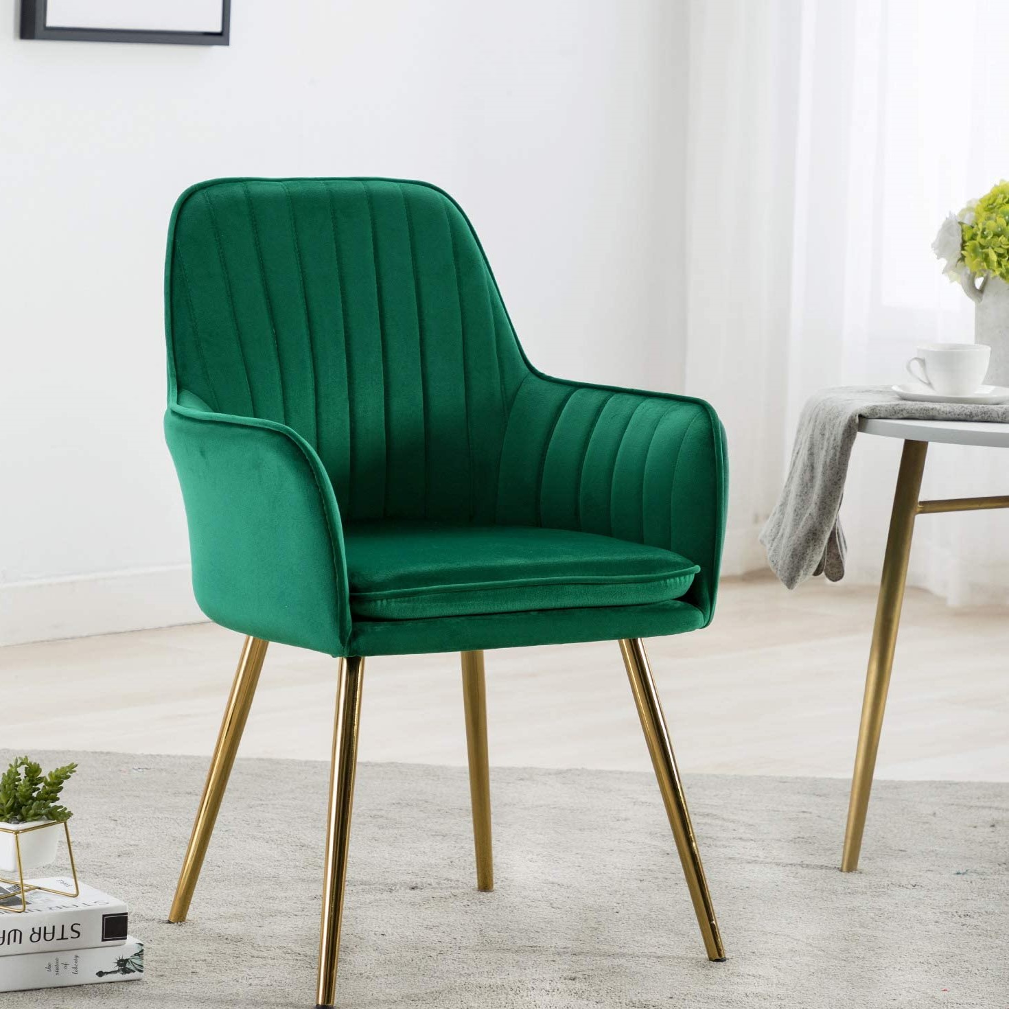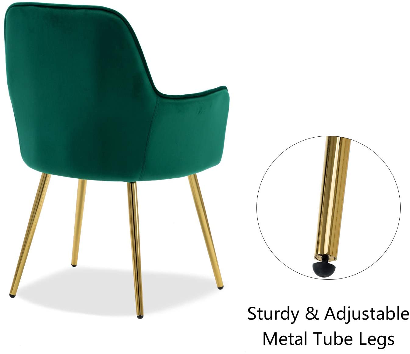 - Sturdy metal tube legs with rich, shiny golden plating coat & adjustable floor protector.
