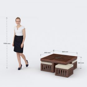 - 4 stools with added cushions for more convenient seating
