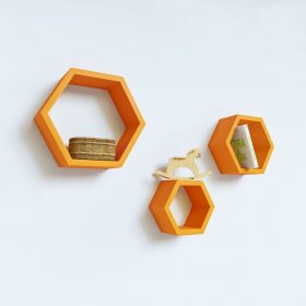 Wall Shelf Rack Set Of 3 Hexagon Wall Shelves Unit for Storage/Display – Orange
