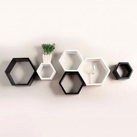 Set of 6 Designer Hexagon Shelves for Storage & Display – Black & White