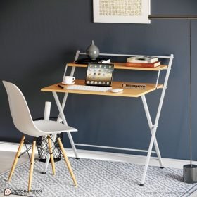 - Storage Shelf :This desk designed with a shelf on the desktop, which can also be folded up. The shelf offering great space for your books, plants, small things, etc., maximize your space. Furthermore, the space between the shelf board and desk top offer space for cords of PC, or other devices.