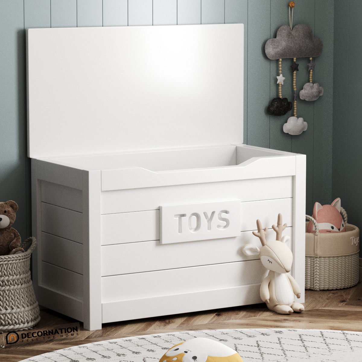 Keep playrooms tidy with the Jollybox Toy Organizer. Its modern design and sturdy engineered wood make it a practical choice for any child's room.