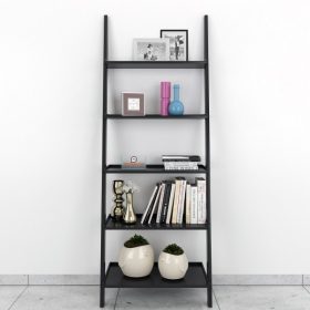 Jasper Leaning Wall Bookcase Ladder Shelf – Black