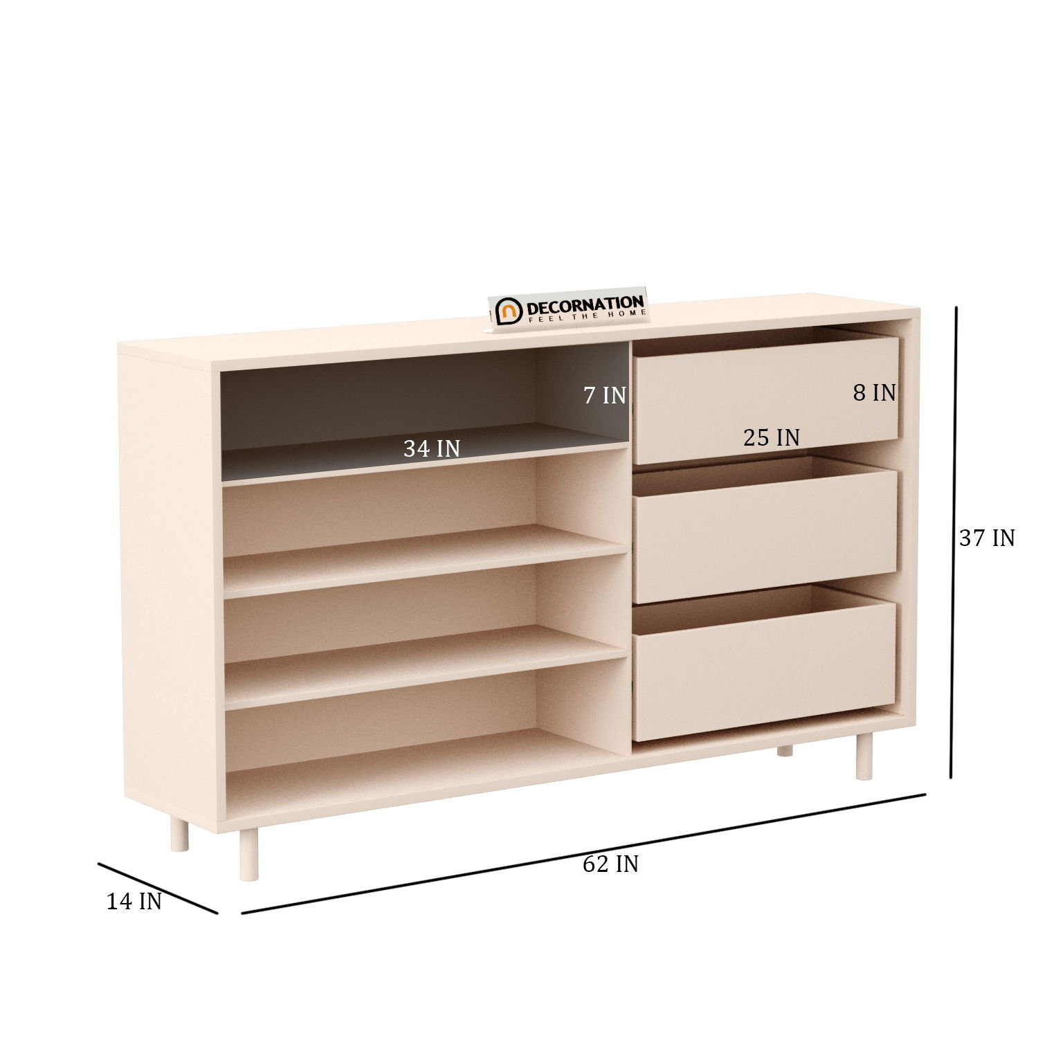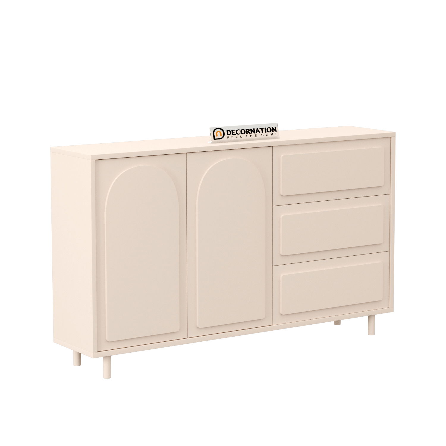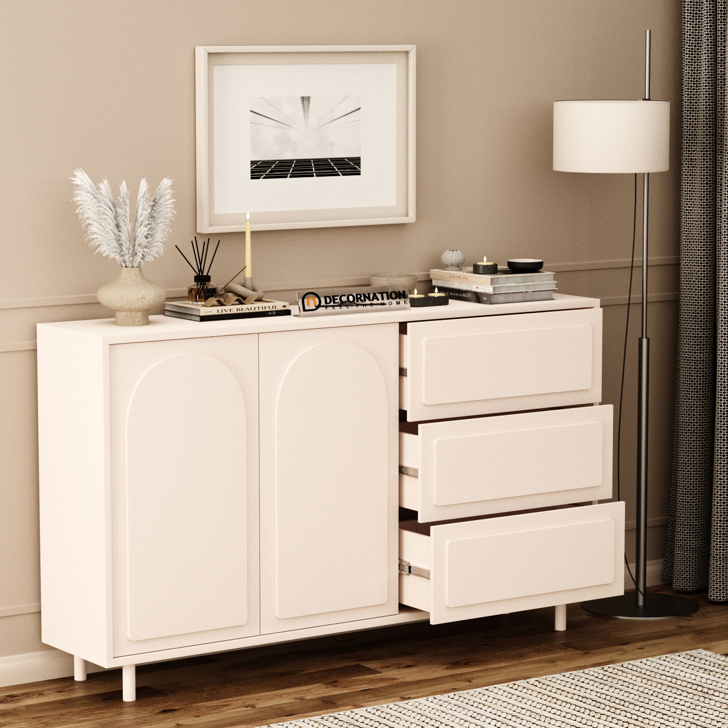 Add timeless sophistication and practicality to your home with the Morgan Sideboard. Designed with a perfect balance of style and storage, this elegant piece features double doors opening to four spacious shelves, ideal for organizing dinnerware, linens, or home essentials. The three smooth-gliding drawers provide additional space for smaller items, keeping your dining or living area neat and clutter-free.