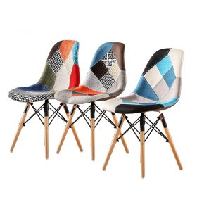 Modern style multi-purpose chair with circular arc design. Nice, stable, and durable, made with a combination of wood, plastic, and fabric.