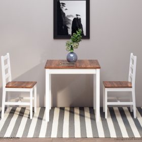 Add some contemporary charm to your home with our 2-seater dining set. Made up of 2 Dining chairs and a dining table provide ample space for serving a small group of family or friends. The view of a table is classic and timeless and never goes out of style, the whole dining set features an ultra-modern design that will help blend in with any home decor. Adorable and an amazing, great color and style, easy to put together, perfect for our space. Compact size allows it to multi-task as a breakfast/ dining table, or as a writing study desk/work-space and it works great for these purposes. You can set this dining table at your kitchen, living room, dining room, coffee shop, hotel and restaurant.