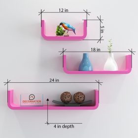 Wall Shelf Set of 3 ‘U’ Shape Round Corner Floating Wall Racks – Pink