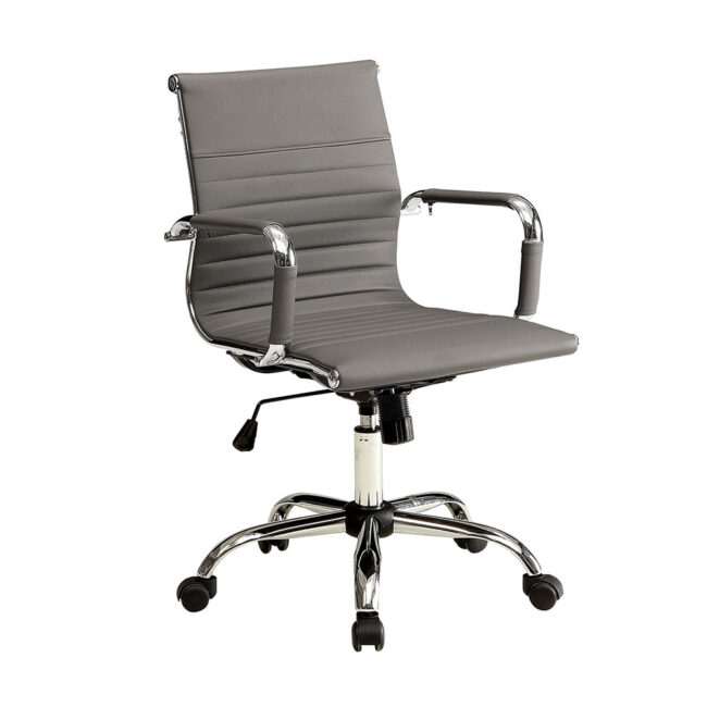 Syncro Tilt mechanism With Comfort Seating. - Restore your office or conference room with this impressively styled ribbed office chair. This mid-back office chair with chrome accent border will add a new look to your office and receptionist’s desk.