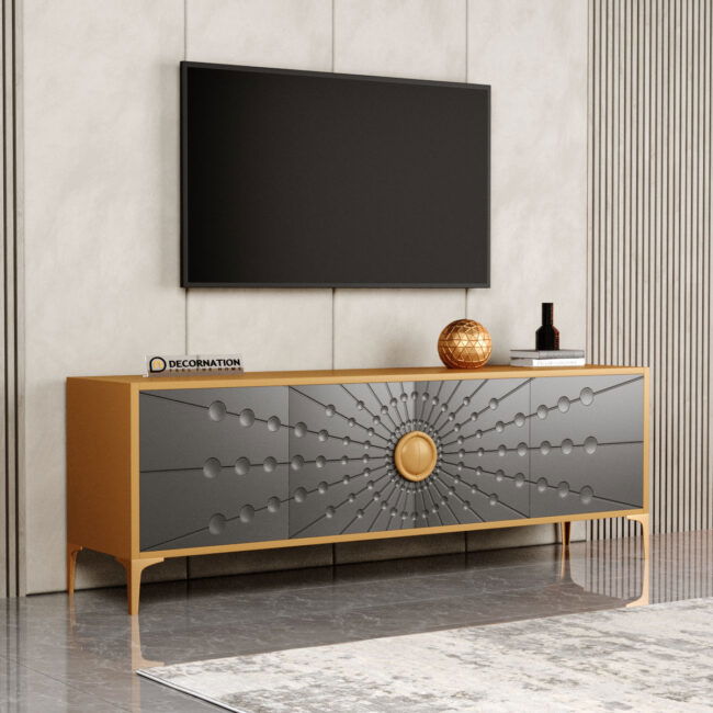Art Deco-inspired TV stand with elegant grey and gold finish