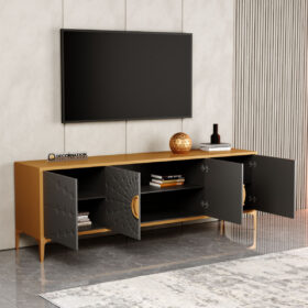 Crafted from premium engineered wood, the Alven TV stand ensures strength, durability, and a refined aesthetic. Its gold-accented base and handles add a touch of opulence, making it a true centerpiece in any modern or luxury home interior.