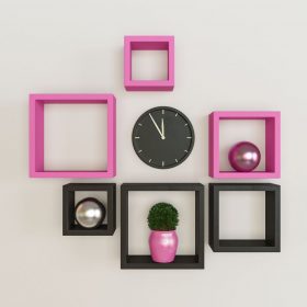 Floating Wall Shelf Rack Set Of 6 Nesting Square Wall Shelves From DecorNation – (Pink & Black)