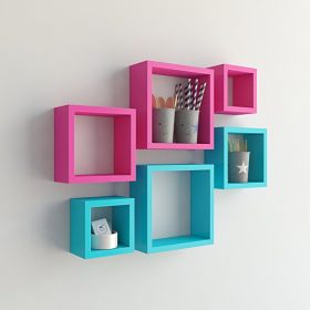 Set Of 6 Nesting Square Wall Racks for Storage & Display – Sky Blue & Pink