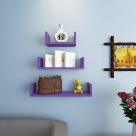 Home Decor Wall Shelves Set of 3 U Shape Shelves – Purple