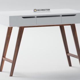 The Valentina Wooden Desk, with its 42-inch width and 21.5-inch depth, offers ample space for a full desktop setup, including a monitor and keyboard. Experience the stability of solid wood legs, while the matte white finish adds a touch of style to any room. With three spacious drawers, it addresses storage needs without compromising on aesthetics.