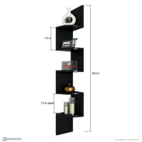 Corner Shelf Mounted Zigzag Wall Shelf for Storage & Display – Black
