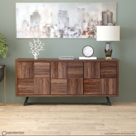 Enhance the aesthetic appeal of your home with this stunning wooden sideboard cabinet. Crafted from high-quality wood, this cabinet boasts a robust and durable structure that promises long-lasting performance. Its ample storage capacity allows for easy organization of your household essentials, keeping your living space tidy and clutter-free. With its elegant design and versatile functionality, this sideboard cabinet can be used as a stylish storage solution in your dining room, a media console in your living room, or even as a chic entryway console. Elevate your interior decor with this versatile and timeless piece.